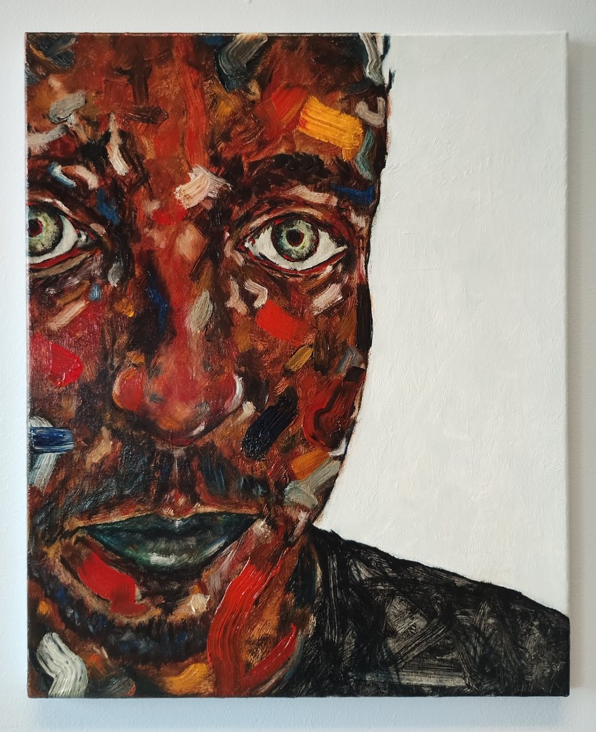 A deep exploration of identity, self-perception, and perhaps the inner dialogue that shapes our understanding of who we are. The painting captures a fleeting thought & an emotional impulse, a moment of self-reflection.