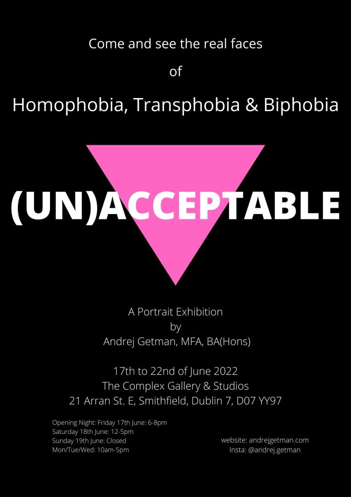 (Un)Acceptable – is an exhibition of forty-one expressionistic portraits, representing members of the LGBTQ+ worldwide community who have and still are being harassed, tortured, and murdered by bigotry and intolerance in our society. The number forty-one is an acknowledgment to the forty-one members of the LGBTQ+ community that were prosecuted in Mexico in 1901, also known as a The Dance of the Forty-One, for just being themselves.